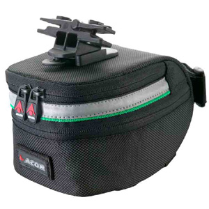 Saddle bag Water resistance 1680D Polyester PU coated Safety 3M reflector and Green webbing trimming Expendable gusset designed Size: L - 105x170x90/150mm (replace ABG-501O) Weight: 192g