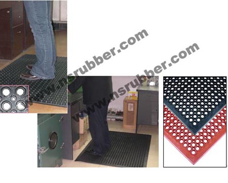 Drainage mats are commonly referred to as rubber mats, kitchen mats and food service mats. However, we offer anti-fatigue Drainage mats for just about any type of application in wet, dry or greasy areas. - Cushion against fatigue. - Light & easy to clean. - Beveled edges for safety and easy cart access.