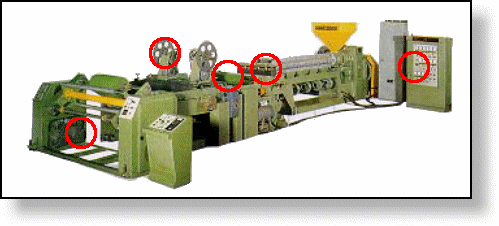 1. Special design of screw, simple, effective, without blocking angle, and with internal water cooling system to enable mixed PVC raw material melted completely and uniformly, extruding speedily without overheating, high capacity and excellent quality. 2. Two stage synchronized take up unit, Take up roller with internal water cooling circulation system, cooling and stablizing the sheet extruding out from the T-die to enable the sheet streching property, and conveying to the winder smoothly. 3. Standardized parts, easy to be replaced. |