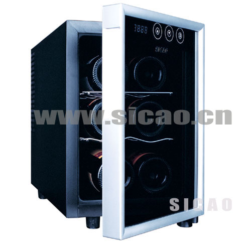 ITEM NO.: JC-16A (6 bottles cooler) Description: 1) Cooling system: thermoelectric cooling 2) Product dimensions: 260x463x415mm 3) Volume: 16L hold 6 bottles 4) Rated voltage: AC 110 / 220V 5) Temperature Range: 8 - 18'C 6) Noise: <15dB