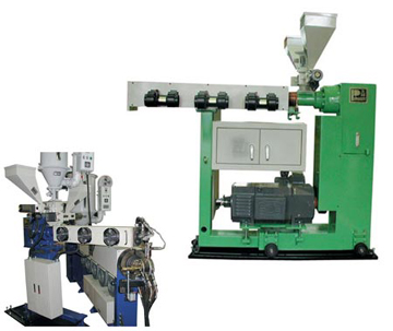 | Horizontal compact type, universal injection joint combine with the cross head of master extruder, for PVC color stripping or PVC LDPE NYLON skin sheathing, or as a sub-extruder for multi-layer extrusion. Four wheel portable stand with machine up/down/forward/ reward motion and free rotating unit, easy mount of universal injection joint with the master cross head. |