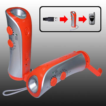 ModelFFT-T14 Multi-function dynamo torch Features: 1:Fuselage of airplane adoption streamlined design,beautiful generous,feels comfort. 2:The adoption machine generates electricity ,construction nicety,the woek rfficiency is high,do not use the battery, green environmental prltection. 3:Obertake light LED around 15? habe spotlight feature,white light 1500k,20mA,3.6v,Ra apparent color 80% life about 50000 hour. 4:The inside places to report to the police the function. 5:One minute rocking-trun 120 circle, have 30 minute lighting (can around Rocking-turn) 6:AM/FM radio.