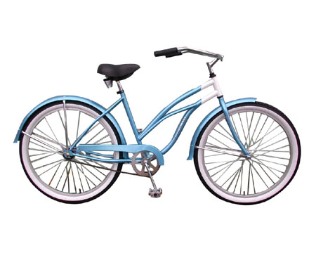 Item No.: FL-BC2603L Model: 26" HOLLAND LADY BEACH CRUISER- COASTER TYPE Frame: HI-TEN STEEL, PULSE WELDED Fork : 26" UNI-CROWN BLADES, SEMI-FORGED END H/B : CRUISER TYPE Stem : ALUMINUM ONE-PIECE TYPE Rim : P-6N 26x1.5x36H ALUMINUM SILVER R/Hub: KT COASTER BRAKE REAR HUB Tire : INNOVA 26"X2.125" BLACK/WHITE WALL, A/V TUBE Pedal : ONE-PC ALUMINUM PEDAL W/REFL. SURFACE TREATMENT: TWO-TONE PAINTING |