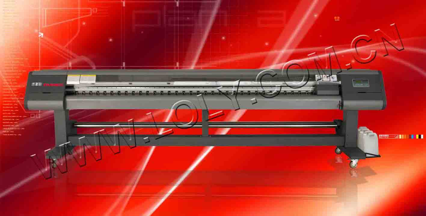 Ink type:Solvent-base C, M, Y, K, Lc, Lm Ink supply system:Auto pumping Ink inspection system:Insufficient ink detector Rip software:Photoprint or Maintop Media type:Normal PVC banner, vinyl, coating film, polyester, etc. Media transfer:Roll or sheet Media feeding system:Auto feeding and take-up unitsweight less than 80kg/roll Print head height:Adjustable distance ranges between 2mm-4mm from media Heating system:Front & rear temperature control, three-digit LED display, adjustable from 30ø«-80ø« Cooling system:External cooling fan Clamp:Manual adjustment Print head cleaning system:Auto cleaning device with anti-clogged flash function & positive pressure cleaning & capping system Printing interface:High speed data transport PCI card