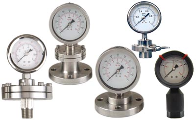 Diaphragm pressure gauges are used when medium is corrosive, contaminated, viscous, crystallizing or with particles.