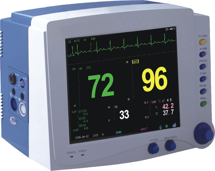Displayer: 12.1" color TFT LCD screen with maximum 8-waveform display Operating menu with multi-language interface selection: English, Spanish, Portuguese, Chinese, French, etc. Against electrosurgical interference and defibrillation and no need to disconnect the monitor from the patient in process of defibrillating. WAN communication function to network with central monitoring system and make long-distance monitoring, diagnosis, maintenance and software upgrade possible