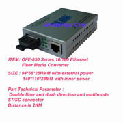 | OFE-850 series 10/100/1000M Ethernet Fiber Media Converter can work together with other different rate (10M,100M,1000M)of equipment It can extend the transmission distance of 1000M media converter to 80KM. It adapts to the connection of optical fiber of backbone transmission apparatus. |