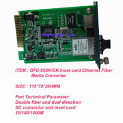 | OFE-855K/GK Slide-in Ethernet Fiber Media Converter is designed for centralized management of computer room., Up to 16 pieces of OFE-855K100Mbps or OFE-855K Gigabit Media Converter cards can be inserted into one rack of OLINK OFE-816 Fiber Media Converter. The OFE-855K/GK series cards have been improved for anti-jamming of electromagnetism and can be mixed insert, so this flexibility allows the unit to grow with the network. |