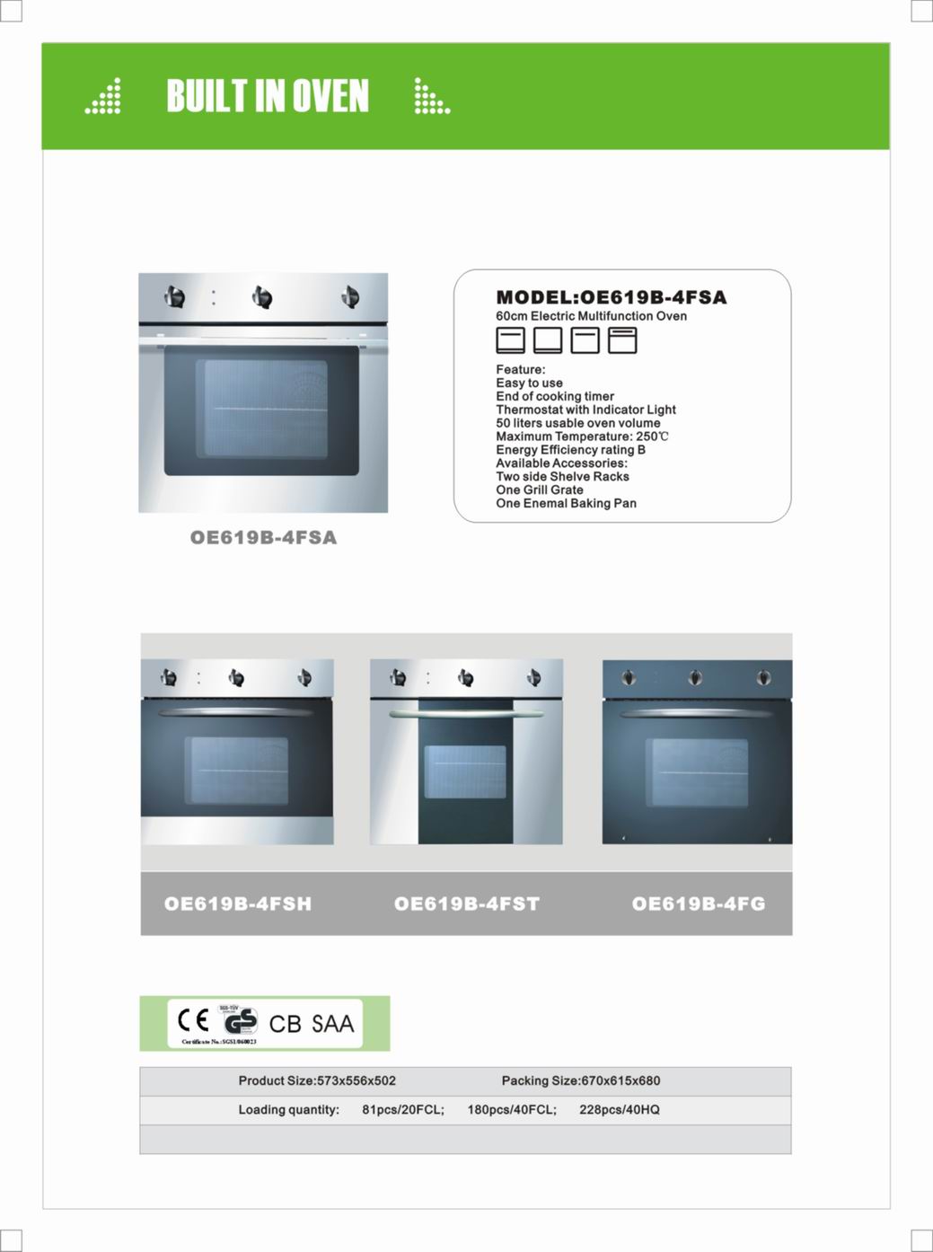 Product Name:Built in Oven(OE619B-4F series)