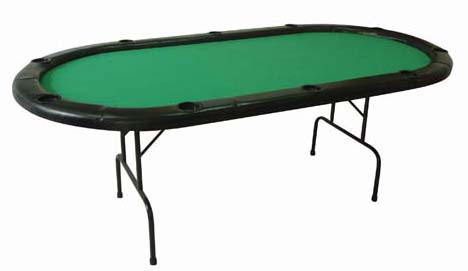 Model: GND-004 Feature: Dimensions: 82" x 42" Easy folding and storage Texas Hold'em table Folds the table in two for easy storage 10 cup holders and padded playing field High quality felt on table With a strong folding steel leg