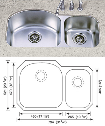 Item No: DS-3210 Name: undermount Kitchen Stainless Steel Sink Size: 31.7?~18.3?~9?Depth: 210mm(8.3") Material: ss304 or ss202 stainless steel sink Thickness: 1.2mm (18Guage) Finish: satin DescriptionF High-quality topmount double bowl. Faucet Holes can be indicated. Clips included. But without sink drain Minimum order : 100 pcs Packing: carton if you are interested in our products pls visit our website at http://www.yasta-stone.com and contact Ms. Mandy at export@yasta-stone.com .msn online: cnyastastone@hotmail.com. Skype: yastastone yahoo ID: cnyasta TEL: 0086-595-22503515 FAX: 0086-595-22507215