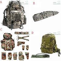A: Art No.: CB10457 Item: back pack Material: polyester ---------------------------------------------------------------------- B: Art No.: CB10435 Item: gun holder Material: polyester ---------------------------------------------------------------------- C: Art No.: CB10456 Item: back pack Material: cordura ---------------------------------------------------------------------- D: Art No.: CB10458 Item: back pack Material: polyester ----------------------------------------------------------------------
