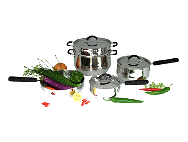 Includes:2 QT.(16cm)covered saucepan 3 QT.(20cm)covered saucepan 6QT.(24cm)covered stockpot pasta insert for 6QT. 10"(24cm)open skillet (sillicone handle) *2sets/CTN,57X33X38cm
