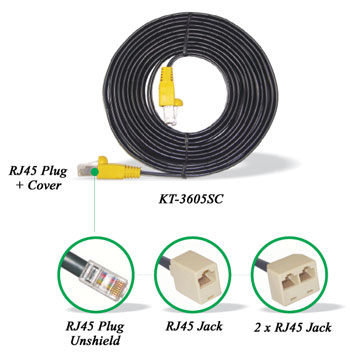 KT-3606 , KT-3606SC - RJ45 Plug to RJ45 Jack, Unshield Type (SC : Shield + Cover) - Color : Black - Cable Length : 1 ~ 30m