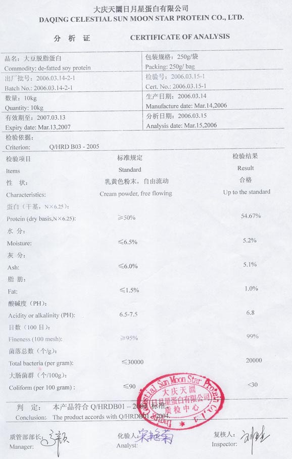 Company Name: Daqing Sun Moon Star Protein Co., Ltd.