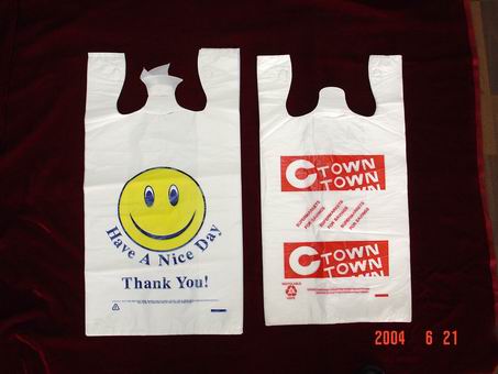 Varies sizes of T-shirt bags,made of Hdpe and Ldpe used for shoppping marketing promotion.