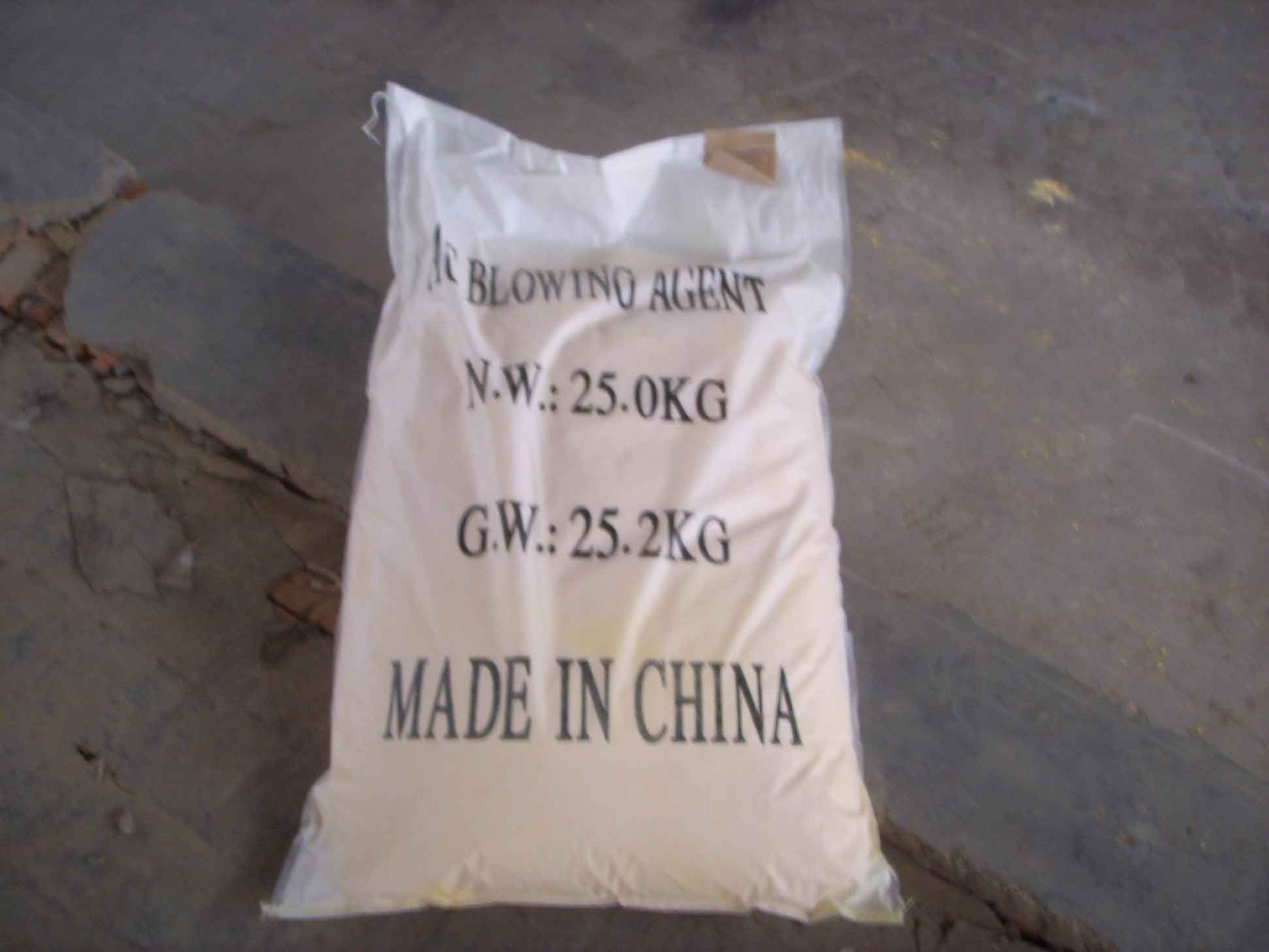 Chemical Name¡G1,1¡¦-azobisformamide , or blowing agent AC Molecular Formula¡GC2H4O2N4 CAS#¡G123-77-3 Structural Formula¡G Appearance¡Glight yellow powder Content¡G≥99% (Gas Release) Gas Release¡G≥215ml/g (20¢J, 760mmHg) Decomposition Temperature¡G205~210¢J Fineness¡G≤ 0.1%(38µm, sieving residue) Loss on Heating¡G≤0.1% Ash¡G≤0.05% Average Particle Size:3-5um 6-8 um 8-10um 10-12um 12-15um Loading quantity:12.5 MT/20'ft (carton with pallet) 15MT/20''ft(carton without pallet) 16MT/20¡¦ft(plastic composite bag with pallet) 20MT/20¡¦ft(plastic composite bag without pallet) Uses¡Gmainly used as blowing agent for PVC, PE, PP, PS, EVA, ABS and rubber¡Aetc. Packing¡G25Kg, 40Kg/plastic composite bag,£á timely delivery is guaranteed.