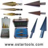 (7) 3pcs metric hss step drills set 4 - 12mm x 9 step 4 - 20mm x 9 step 4 - 30mm x 14 step x 3 pcs/set Packing: (a) wooden box; (b) aluminum case; (c) blister with card;