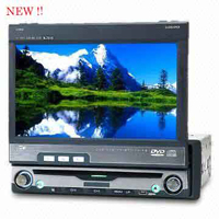7-inch car DVD player Super slim motion mechanism DVD, VCD, CD, MP3, MP4, JPG-CD, WMA, Div X playback USB port, supports USB interface digital product, slide show JPG file Built-in Hi-Fi 50W x 4 maximum power output Built-in TV tuner, PAL-DK, I, BG, NTSC-M/N Preset 50 FM radio stations 4.1 track output, AV input CCD rearview function Fully automatic panel with slide and angle adjustments Outer size: 160 x178 x 100mm Aspect ratio: 16:9 Operating voltage: 12V DC Full-function remote control with OSD Accessories: remote control, data connection cable, instruction manual and antenna Packing details: 5 pieces per carton Dimensions of gift box (W x D x H): 328 x 263 x 205mm Dimensions of master carton (W x D x H): 548 x 340 x 448mm Gross weight of master package: 16kg