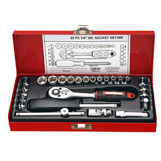 29pc 1/4" dr. Socket set, With Metal Case