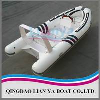 Rigid Inflatable Boat HYP520 Standard: ISO6185 & EU CE Certificate Technical Spectification Over Length : 520 cm Over Width : 228 cm Tube Diameter : 50 cm Tube material: 1.2T PVC/Hypalon Air Chamber : 5 Transom height : 51.5cm Transom width : 126 cm Max Passenger : 8+1 Max Engine : 90 HP Max Loading : 880 kg Floor Type : Double FRP Gross Weight :280 kg Packing Size : 480*160*85 cm 20'/40 'Container : 4/8PCS Contact:jiner at lianya-industry dot com