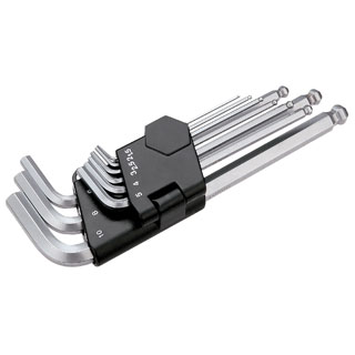 9pcs Long Ball hex key - Metric (1.5-10mm) or Inch (1/16"-3/8") size in Plastic holder & Sliding card Package.