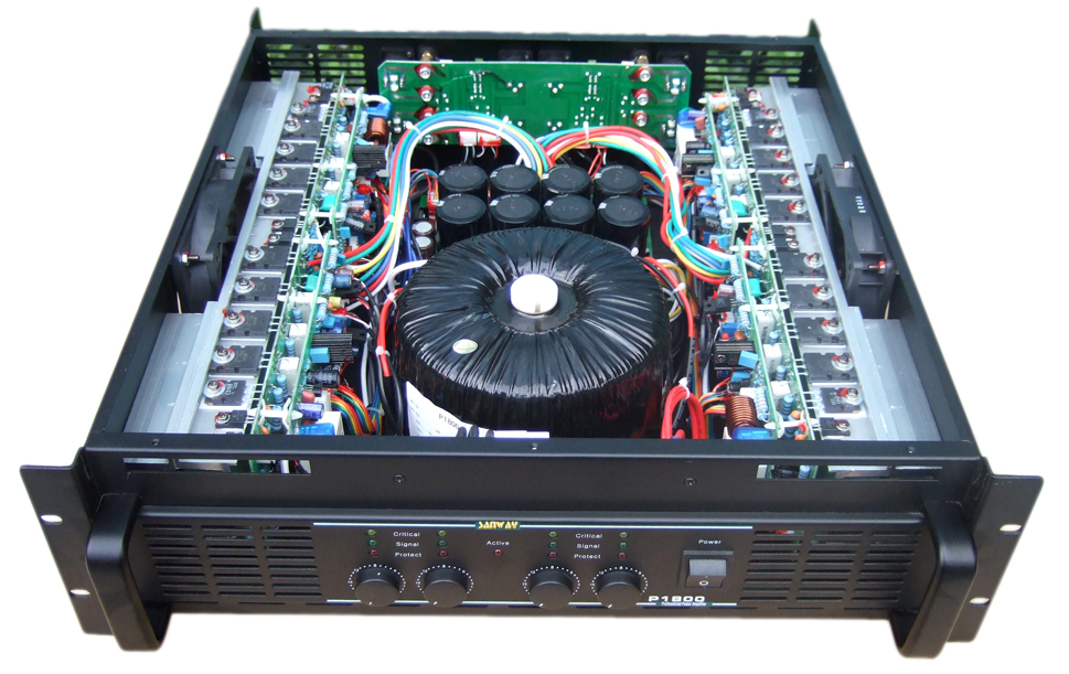 Key Feature: *High efficiency toroidal power transformer *Symmetrical layout for even weight distribution *Modular construction for easy servicing *2/3U high, heavy duty steel chassis *Three models that range in power from 160 watts to 365 watts per channel *Channels 1&2 and 3&4 bridgeable for maximum flexibility *Custom integrated security cover for tamper-proof installations *Variable speed fan for low noise *DIP switch control for stereo, bridge mono and parallel operation *Comprehensive front panel indicators including signal, active, protect, critical LEDs *Comprehensive protection circuitry including DC, infrasonic, thermal overload and short circuit protection *High-performance Class AB output circuitry, except P1800 ( class H ) *Dual, continuously variable speed fan |