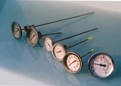 Bimetal thermometer is a kind of industrial and household thermometer to measure medium or low temperature. It has an extensive range of application, including pharmacy, gardening, printing and food service industry ˇ¤Rear connection: stainless steel stem with spiked end ˇ¤Type: common bimetal thermometer (JWSS) 1" Pocket bimetal thermometer(JWSS101) ˇ¤Dial diameter: 25.4mm 35mm, 46mm, 52mm, 75mm ˇ¤Nominal range: (-40/+50, -40/+70,- 20/+80,-10/+110, 0/+100, 0/+150, 0/+200, 0/+300, 0/+400)ˇć/¨H ˇ¤Scale division: 1ˇć/¨H 2ˇć/¨H 5ˇć/¨H 10 ˇć/¨H ˇ¤Stem length: 40 - 500mm ˇ¤Stem diameter: 4mm, 6mm, 8mm ˇ¤Material: stainless steel |