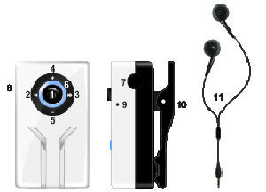 (11) Accessories: a.Main body + earplug. b.Travel charger (European / American spec) . c. Manual (English & Chinese)