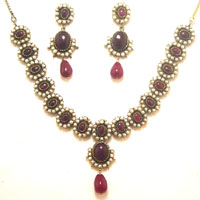 Victoria Necklase Set, Polki Stone Brase Metal. Hand Made.