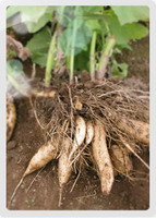 Yukon plants can grow up to 2 meters in height and produce small, yellow inconspicuous flowers at the end of the growing season. Unlike many other root vegetables domesticated by the Incas (ulluco, oca), the Yacón is not photoperiod sensitive, and can produce a commercial yield in the tropics. |