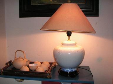 -Product code: LTCC-0052 -Origin: Hanoi Workshop -Dimension: 58cm H x 38cm W - It has a porcelain body with crystallized light blue and white enamel. It is designed in the shape of heart. The body is made up with small patterns on enamel. Shade is made of light brown canvas. The color of shade can be changed, upon your hobby and request. The support is made of wooden and painted with black color. This lamp brings a comfortable and interesting feeling. It suits elegant designed spaces. -Usage: a beautiful decoration at the corner of hotel hall or at the lobby of high-grade resorts. -Price: 23.4 US$ Ex-work or Hanoi -Payment: bank transfer, cash, credit cards (MC, VS, JCB, Amex). -Welcome to our website, you can find more other products with high quality and competitive price.
