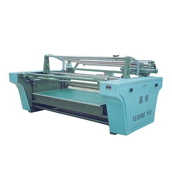 All transmission components and moving structures are fully covered by dust-proof frp housings to prevent the entering of cotton fibre and outside particles. The plaiting table is lifted by hydraulic system, and descended by its own weight. and by a fluid volume control valve to set accruately the lowering speed of table in accordance with fabric's thickness. Auto-stop motion of measuring counter and machine are stopped at the end of fabrics. Photo electric sensor is fitted to straighten up the edge of fabric's pile. Gentle starting up, silent running.operators are needed only to draw out and reset fabrcs for continual work. Length per fold is adjustable from 0.8 to 1 meter. Equipped with photo-electric type edge control device. |
