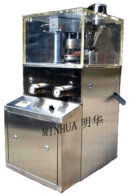 The machine is a single press type,continuous automatic tablet press for pressing granular raw materials into tablet. It is mainly used in pharmaceutical industry and also the chemical food,electronic industry Features: 1. The outside part of the machine is full-enclosed,the material of the cover and the inside table face is stainless steel.The turret face is specially disposed keeping the luster of the face and prevent the cross pollution,meet the GMP norms. 2. It has transparent windows so that press condition can be observed clearly and the window can be opened cleaning 3. The lay-out of all the controllers and the operate parts is reasonable 4. The speed is adjusted by frequency converter 5 A overload protection unit is included in the system to avoid the damage of the punches and apparatus,when overload occurs the machine stops automatically 6. It is mechanical and electrical integration,it is showed by touch screen(such as speed,capacity and stoppage) 7. It has dust collector.There is advanced installation that can automatic dismantle dies. |