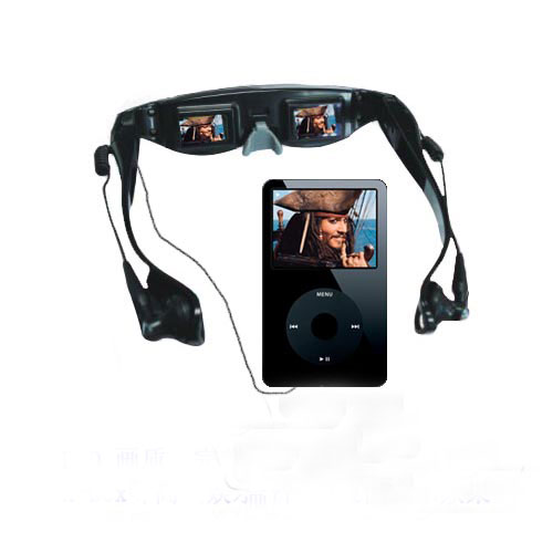 SPECIFICATIONS: 1,Power supply Power Input: DC3.3V_5.5V, stable voltage Accessories: AC adapter,output 5vdc 1A, input 100VAC-240VAC Battery box :Ni _H, 4xSIZE AAA or alkalinous AAA cells,no cell inside Power Consumption: Less than 0.65W 2,Video and Voice: Signal input: AUTO NTSC/PAL video signal Sound Function: double-channel stereo Adjustment Function: variable volume, picture brightness Pixels: 640H*480V dots, 710,000pixels Angle of View: 32 degrees Virtual Display Size: 72 inches, 2m away 3,Input jacks AV input jack: Ø3.5 female, 4-pole. AV connector cable: The 4-pole hole male Ø3.5, Ø3.5 male jack audio and video. RCA connector cable: the 4-pole hole female Ø3.5, RCA in yellow, white, red. Video signal: 1 Vpp/75¦¸ Sound signal: 200mVrms/20K¦¸ Power input jack: Ø4.0/1.7 female 4,Ambient Temperatures operation: -10.C-60.C storage :-20.C-80.C 5,Wight and Dimensions Display unit: Approx. 90g (not including cables) Dimension: Approx. 168(W) x 37(H) x 30 (D) mm (display unit) Signal cable length: 150mm For the purpose of improvements, design and specifications are subject to change without notice