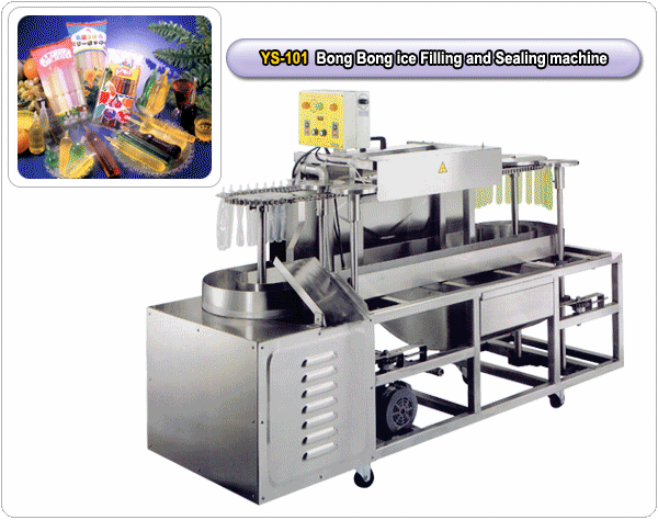 Application Suitable for filling & sealing any kind and shape of plastic-resin made soft tube product such as Bong Bong Ice ( Stick Ice), natural or artificial juice and any liquid for drinking or freezing purpose. Features: The machine uses LDPE made soft tube for filling & sealing juice or drink. The consumer could drink directly or eat after freezing as stick ice product. The machine is made of stainless steel #304 and meets the sanitary requirement. Easy to clean. The machine is equipped with Speed & Temperature Control Device. From the tube hanging, excess liquid squeezing, heater sealing to ready-product discharging, all functions are finished within a small limit working area. Only one person is required for machine operation to meet the space & manpower saving and reduce the production close. Mechanical design type is for easy operation, low breakdown, more durability and less maintenance cost. The machine could be adopted for individual usage or connected with production line for complete automation requirement. To match our 40 m/m Automatic Plastic Blow-Machine to make the soft tube by yourself for perfect working mate and carry out the coherence production from tube blowing, filling to tube sealing in order to reduce the indirect contamination and production cost and for more hygienic security. |