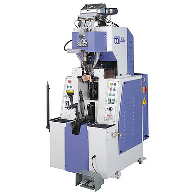 OUTSTANDING FEATURES: Hydraulic tacking, giving stable and perfect tacking results. Motor-driven tacking position adjustment, offering quick change on shoe sizes. Effective tack-blocking devices on all tack channels. Removable wiper ends, adaptable to different shoe styles and sizes. Flexible tacking quantity selection, up to 21 tacks. Unique tack-supplying mechanism, lowering possibility of tack jam. 3-section tack container, making it possible to use tacks with 2 different lengths. Equipped with error warning indicator, reducing repair down time. Hydraulic-actuated machine, reducing noise of working environment. Computerized PLC control, providing stable sequence control.