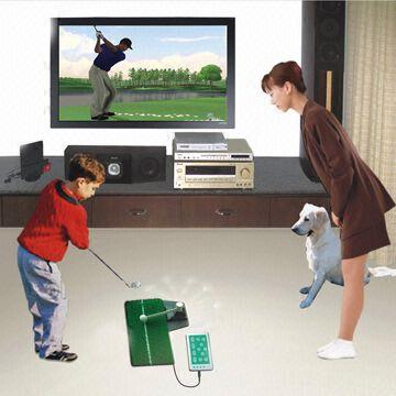 Main devices: o One electronic induction mat (A in the picture) o One control box (B in the picture) o One regulator o One wireless receiver o One tiger wood PGA tour 07 PS2 game CD (self-bought) o One Sony play station 2 (self-bought) (C in the picture) o One television (self-provided) (D in the picture) Be different from the other PS2, the Egol family TV golf (F08) can use golf ball, golf club to play golf in room but just as in the world famous courses, in virtue of the high-tech Electronic induction mat, TV or computer and PS2 system Not only be helpful for enjoying the amazing feeling of the vivid golf playing, but also for knowing more information about golf rules and many top players wonderful skills