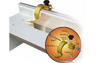 Description: Add this adjustable flip stop system to your shop made fence. Solid construction using aluminum extrusions and steel fasteners.