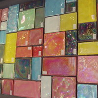 Handmade Rainbow Glass Tile. Color: Rose, Yellow, Royal blue, Light green, Orange, Pink, Moss green, Coffee, White, Black. Thickness: 8mm. Current size: 73x148mm, 98x98mm, 73x73mm, 48x148mm, 48x98mm, 48x73mm, 48x48mm, 23x23mm. Can be OEM to any size. Edge: Rough. MOQ: 10 SQ.M.