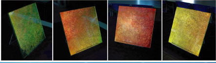 Flush Glass, changeable film, changeable color glass. Polyflush Glass appears in different colors when viewing in various angles. It has no metal containment, no oxidation problem and provides up to 99% UV protection. This is an attractive eye-catching material with a unique presentation that will enhance your most imaginative product displays.