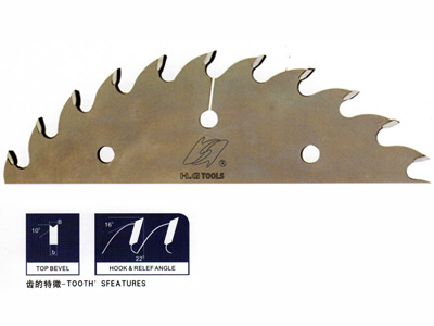 Equipped with the left/right bevel sawtooth,w/multiple louver. Applicable in the multiple-blade saw for the lengthwise cutting of various hard and soft timbers,with processing thickness at more than 70.