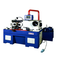 Model: UN-75 1. Diameter range of threads rolled: dia.10~ dia.75 2. Range of pitch rolled: 1.0P~10.0P 3. Max.length of thread rolled: in feed and thru feed both available 4. Speeds of dies: 20~50 r.p.m 5. Max.diameter: dia.198mm 6. Bore of cylindrical dies: dia.70mm / keyway / 14x7 7. Width of cylindrical dies: 35, 70, 100, 150 mm 8. Max.Min.center distance of die-spindles: 275~195mm 9. Output(pcs/min): 4~20 10. Swivelling angle: +-6 degree 11. Machine motor: 25HP(18.75 kw) 12. Hydraulic motor: 7 1/2HP (5.5 kw) 13. Max.rolling pressure: 60TONS 14. Net weight(Approx.): 7400kgs 15. Gross weight(Approx.): 5200kgs 16. Overall dimensions.(LxWxH)m/m: 2600mm x 2400mm x 2400mm 17. Hipping measurement. (LxWxH)m/m: 2520mm x 2240mm x 2230mm |