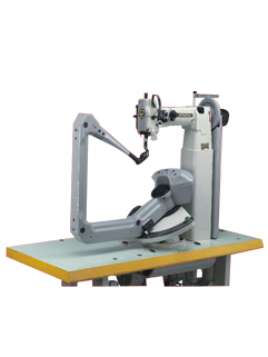 Able to stitch the entire upper as shown in the picture. Uses threads from size 20# to 15# strand. Stitch length ranges from 0 to 8mm. Equipped with a servo-motor and automatic thread cutter.