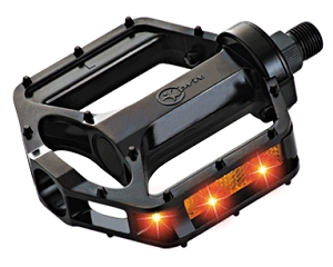 "Body: Aluminium Axle:Carbon Steel Reflector: CATEYE Wheel Size:105 m/m x 99 m/m Packing:Box packaging OR Blister packing" "Flash LED Lighted bicycle pedal - BLACK Features: - Made in aluminum:Used for regular MTB bike. -Build in generator. Side light for added visibility, six Flash LED lights for each - No battery needed Flash LED lighting pedal -Easy Installation "