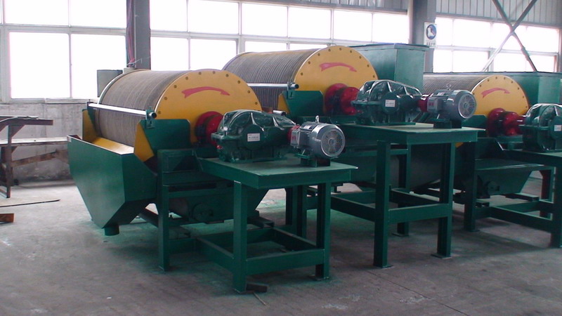 QJ-CT (B) series drum permanent-magnet separator CT (B) series drum permanent-magnet separator is a wet type low-intensity magnetic separator with relatively high magnetic field and the most efficient magnetic separating machine for minerals with strong magnetism. It can be equipped with semi-conflow, con-flow and co-flow tanks according to customers¡¯ requirements and its magnetic induction intensity can be designed according to specific mineral properties and operation processes. Advanced in structure, light in weight, reliable, easy to maintain and with serialized products and standardized parts, the separator can satisfy the needs of large, medium and small ore concentration plants. This machine is mainly used in the following applications: (1) For primary rough dressing and refused tails, increasing recovery rate and reducing the load of second-stage grinding. (2) For concentration of ferromagnetic minerals, increasing ore grade and recovery rate. (3) Used before high-magnetism separation to remove ferromagnetic minerals from the ore and prevent magnetic clogging. (4) For recovery of heavy media at coal processing plants. |
