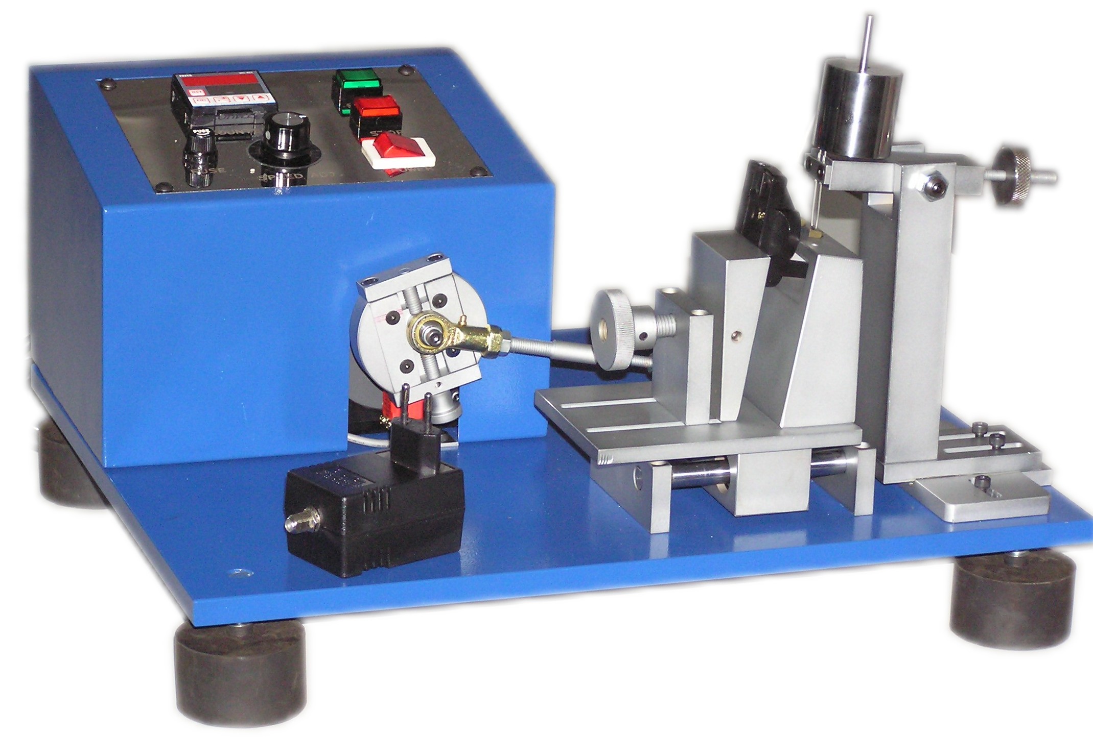 Apparatus for abrasion test on insulating sleeves of plug pins.