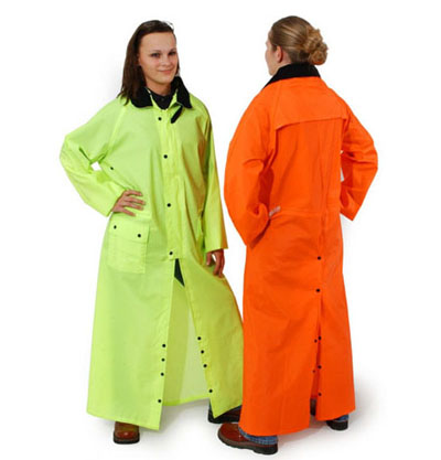 3/4 Length or Full Length, Match color Corduroy Collar, saddle Gusset , Plastic snaps on storm front , detachable hood with snaps. two pocket on front.