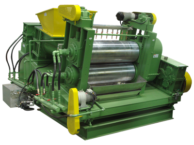 | The Kneader sheet performer was designed to manufacture rubber sheets on a fully automatic basis. This uniquely designed sheet performer consists of two sections, a twin taper screw feeder and a roller die unit. The feeder section has a large volume hopper, which is capable of handing multiple batches directly from a mixer. The twin taper screws "¡¨bite " and feed the rubber compound into a horizontal roller die for automatic and continuous sheeting, while large volume cooling jackets in the feeder and roller die section imparts effective cooling to the rubber compound. |