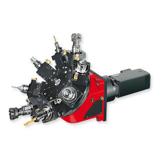 With up to 8 individual tools or multiple spindle heads Total flexibility through spindle programming Only one single AC servomotor required for turret indexing and tool drive Turret locking and unlocking times can be overlapped with the machine slide traversing movements Integrated overload clutch protects turret in the event of a collision Spindle speeds ¡V up to 18.000 rpm Suitable for milling as well as drilling operations Only the tool in the working position is driven High-volume production Tool carrier does not lift during indexing |